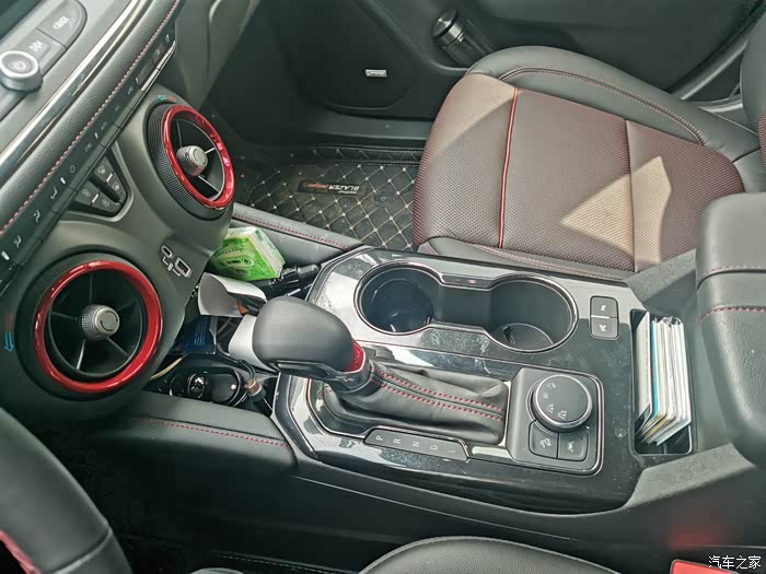 据说是仿照雪佛兰经典轿跑 科尔维特设计的 手动空掉旋钮。这个红色点缀还是做的可以