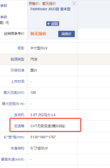 不可能是cvt变速箱,从该车的尾标看其扭矩为380,一定是at或双离合,cvt达不到这么大的扭矩。
