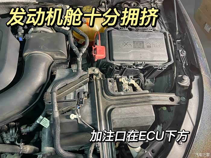 ??然后问题就来了,这款车的机舱设计十分十分的紧凑,变速箱有两个加油口,设计的都十分奇葩,一个在电瓶和ECU电脑板下面。官方维修手册的意思是要拆掉电瓶和ECU电脑板。对于小白来说,感觉风险好像挺大,毕竟要拆ECU,好几个硕大的接线头。另外一个加油口需要拆掉左侧轮胎,用内六角落实拧开变速箱侧面的一个螺丝,但是需要额外准备适配的变速箱加油工具(齿轮泵和适配管口),空间也十分拥挤,没有大的修车千斤顶去抬举到一定高度,不太好操作。
