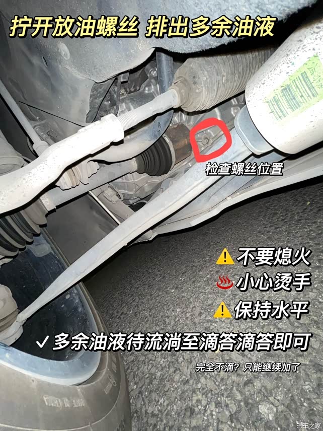 Ps:我自己是省略了最后一步液位检查,因为我是放了一晚上,冷车换油,根据这款变速箱的拆解结构,理论上完全冷车状态遵循放多少加多少的原则即可(注意考虑漏斗量杯加油管等油位挂壁带来的误差)