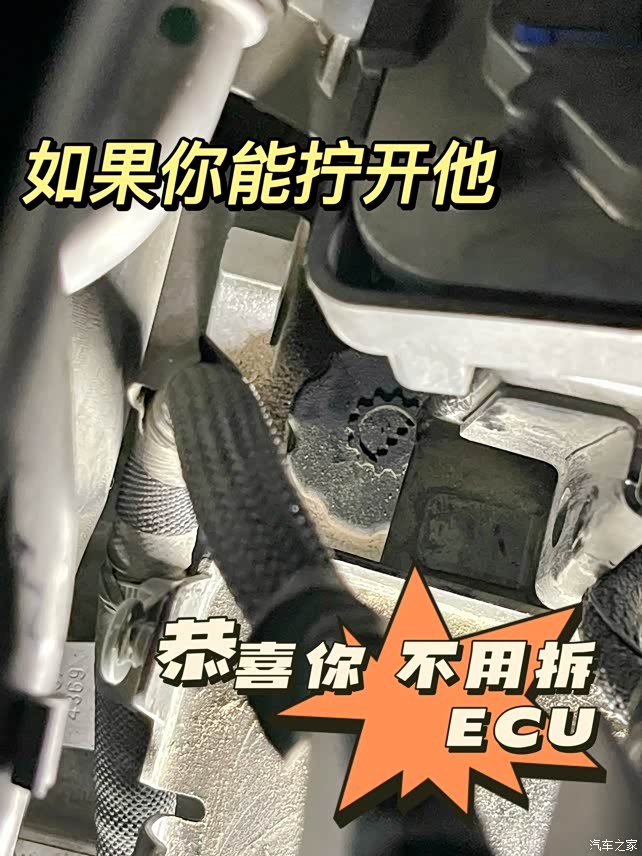 拆下电瓶后其实就可以看到变速箱盖了,由于我的手型刚好可以够的着并且拧开,所以就不用继续拆ECU了。