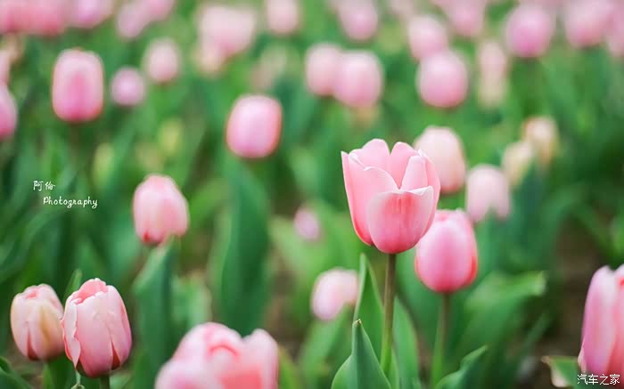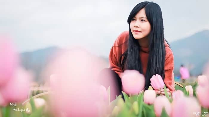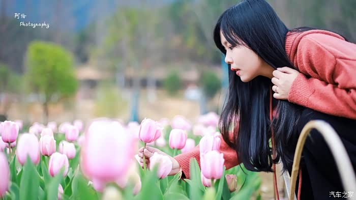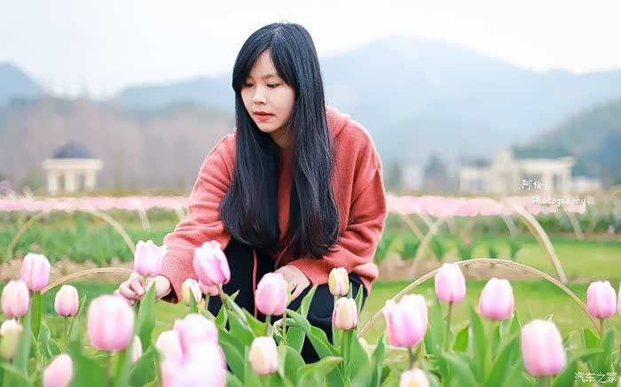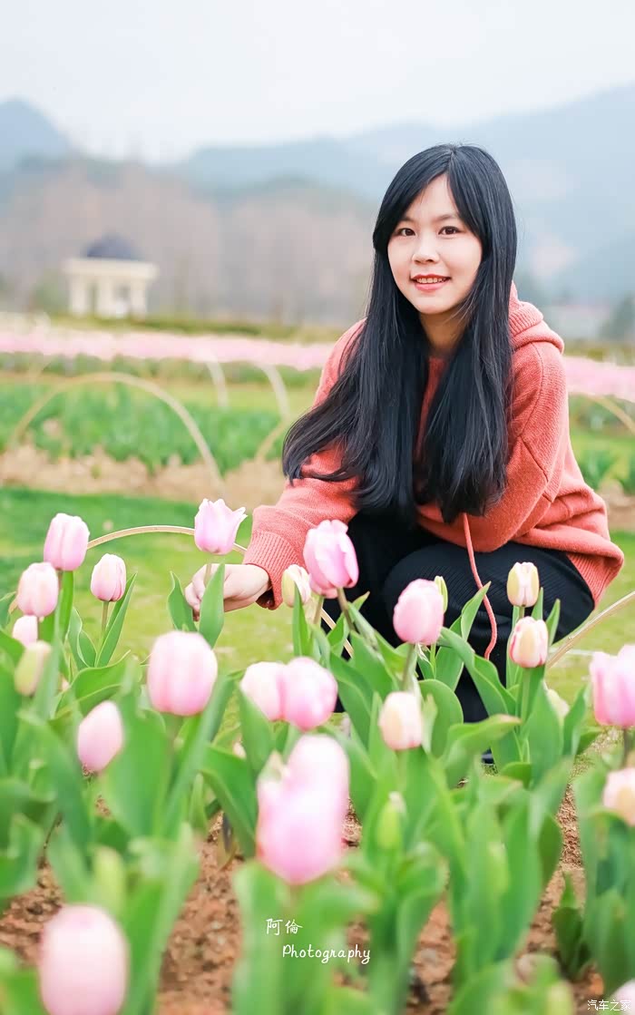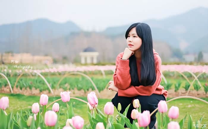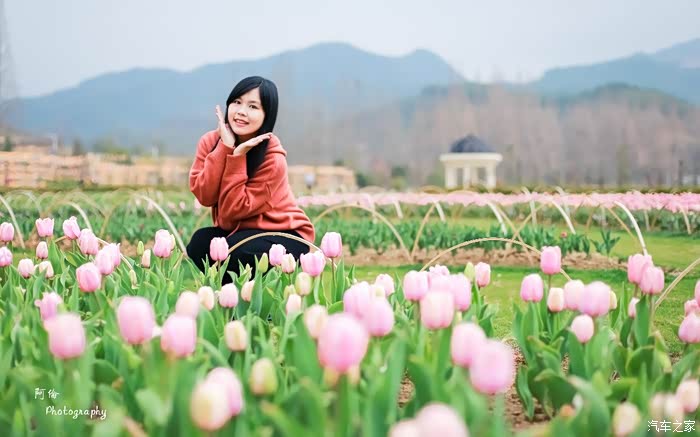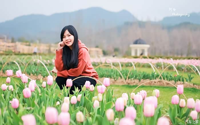 媳妇看到这美景,下车后就像飞到花丛中的蝴蝶一样,虽然处于未完工的状态,但是已经有些花儿盛开了,比如郁金香
