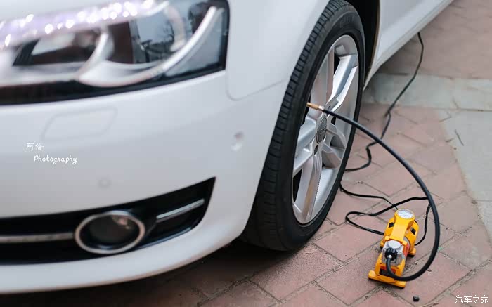 当然,自驾游前,一定要对车辆进行一波简单的检查,如轮胎胎压、防冻液等,这次自驾游还是由家里综合性能最佳的老A3进行啦,1.4T动力够用,车小操控敏捷,在小村庄里也好掉头,日常A3都是老妈开着上下班,所以经过检查,发现两只前轮的胎压有些不够,遂拿出我的神器,便携式充气泵进行充气……