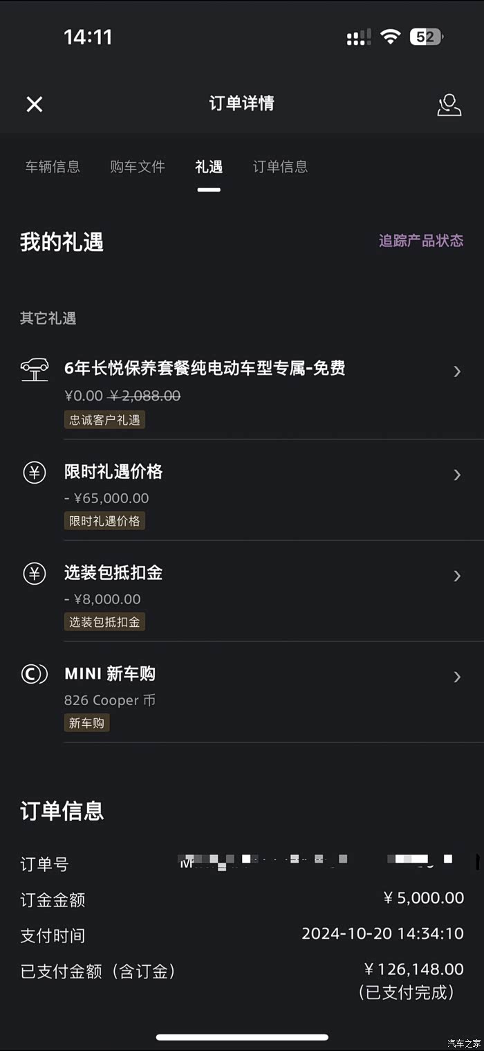 10月20日周末,送完两娃上补习班,中间时间正好有富裕,直接开车到4S店,从来没见MINI的展厅有那么多人,一拨一拨的……找了个销售,问问了配置,和政策。其实也没啥好选的,就三款,低配14万8千8的是肯定看不中的,那个大灯连个透镜都没,座椅都不是电动的,配置太低了。哈曼是肯定要的,外观套件也是肯定要的,所以……根本不用选,无脑大满配。看了看回店的同配置车,也没试驾,主要是销售太忙了,试驾车还在外面跑,我们要去接娃也没时间。让销售查有没有车,有没有喜欢的灰+红颜色,说有,直接就扫二维码交5000定金,把车定了。一刻钟就买完了……