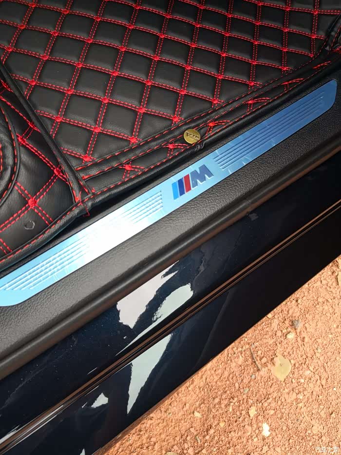 炭黑色真的很特别,在强烈的阳光下是黑色,在阴天,是深蓝色。远看是黑色,近看又有点泛蓝。但是照片拍出来都是黑色(好尴尬)。本来想选珊瑚红内饰,可惜没有。棕色内饰有点视觉疲劳了,之前5系就是棕色内饰。