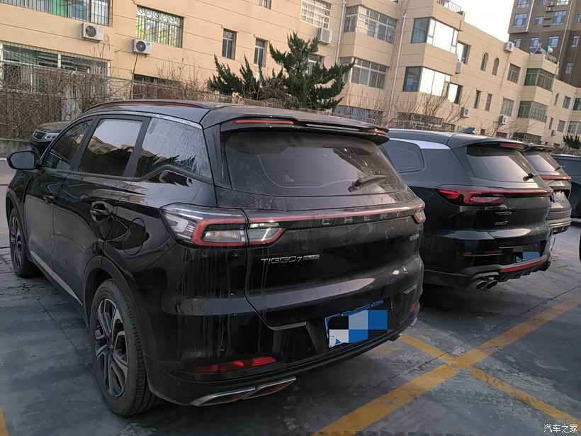 走近停车场时,视线一下子就被那片黑色吸住了——我的瑞虎8旁,左右各停着一辆同色兄弟:左边的瑞虎8 Pro裹着哑光黑,格栅的星芒在阴影里藏着锋芒;右边的瑞虎7 Plus是亮黑漆面,阳光下泛着瓷釉般的光。三辆黑色车身并排铺开,线条或沉稳或灵动,却都透着股默契的厚重感,像三块被精心打磨过的墨玉,在车位里静静对峙又暗暗呼应。
