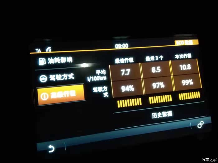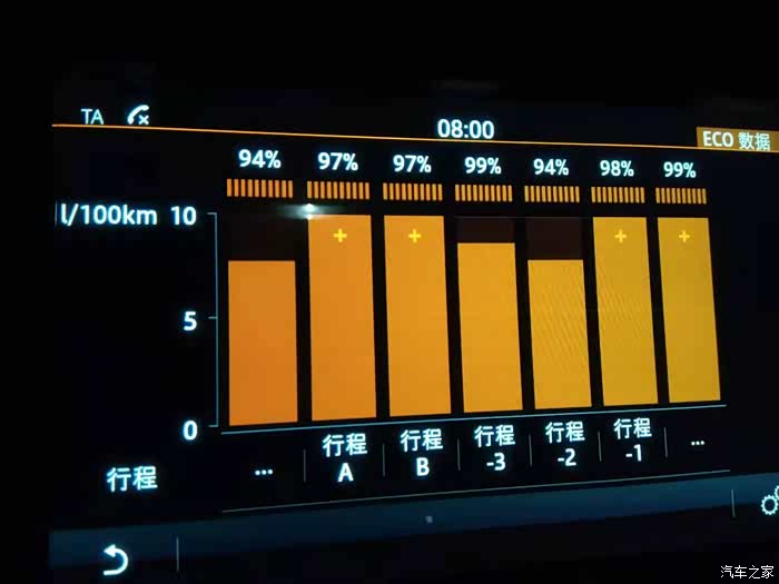 6,油耗,由于是周末,堵车大概30%吧,跑了一百公里,油表下降一小格,车载显示近3次的油耗都低于9,平均油耗显示11.6.感觉可以。2吨的车,要求在城市路况下跑到8,9个也不现实。