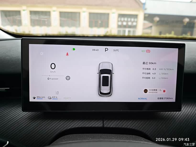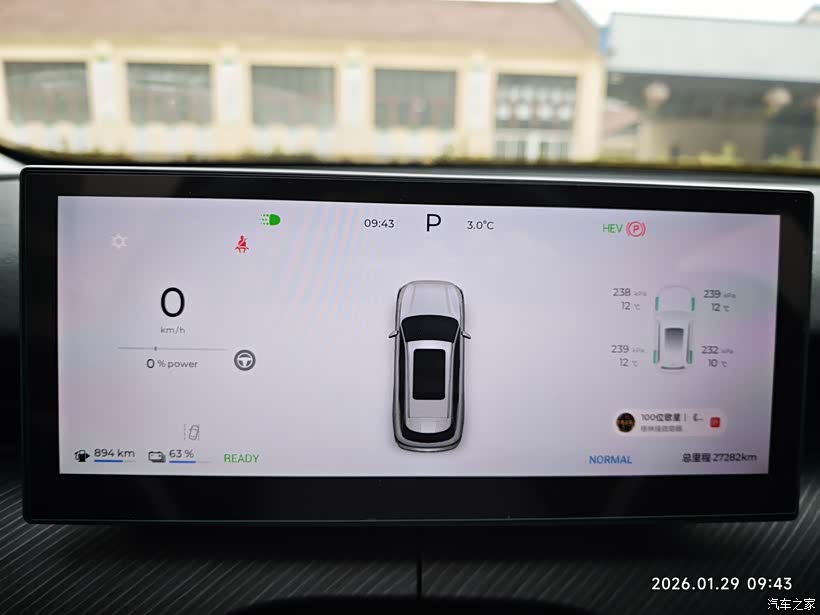 这是抵达目的地,里程表27282km,此时续航894km,电量依然63%