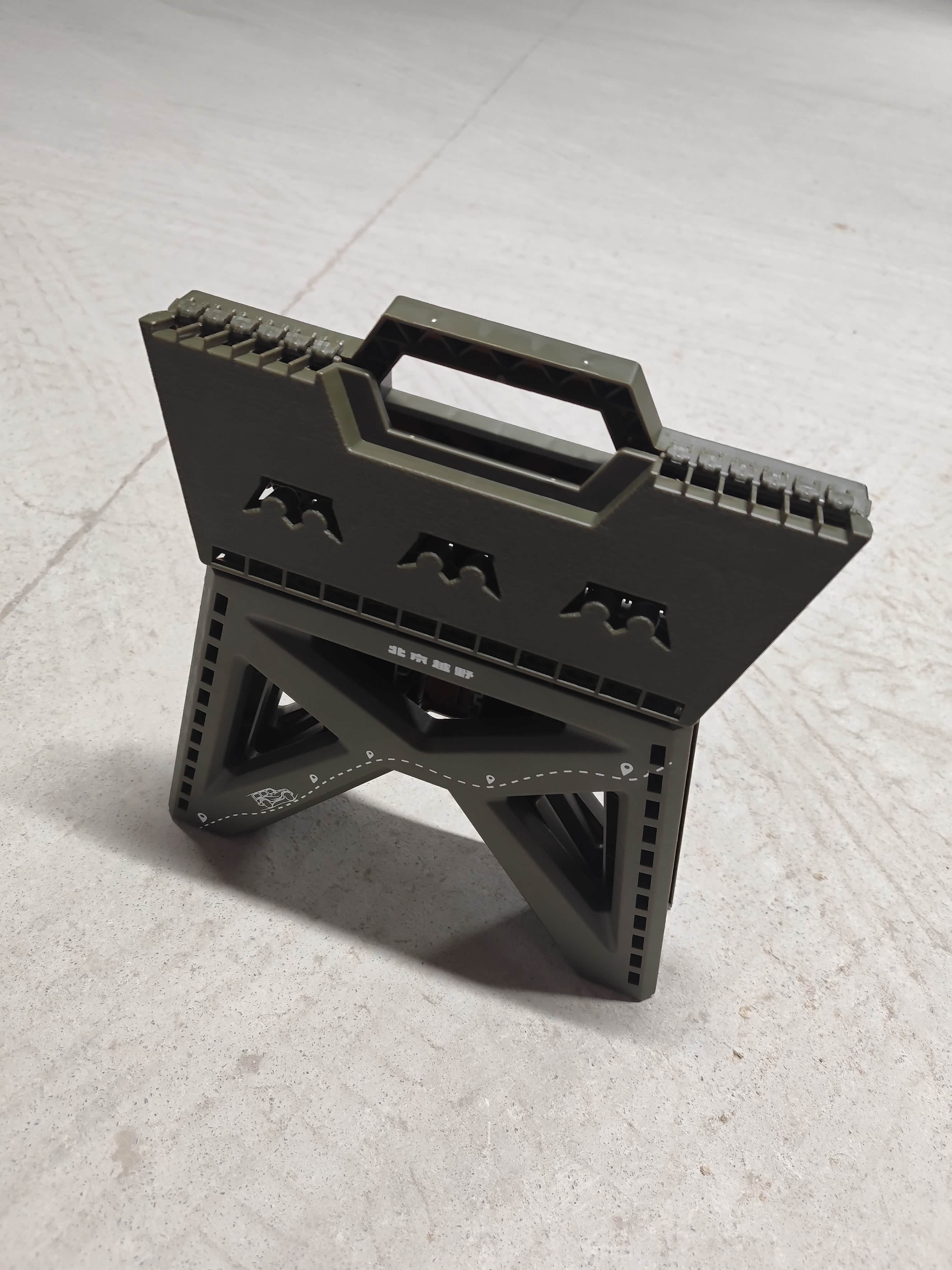 它的核心亮点在于全工程塑料材质。这使它比金属支架的凳子轻了一大截,单手提起毫无压力,非常适合徒步、野餐等需要减负的场景。别小看塑料的承重,我亲自试坐,结构非常稳固,承重完全不用担心。