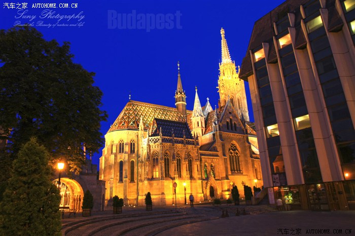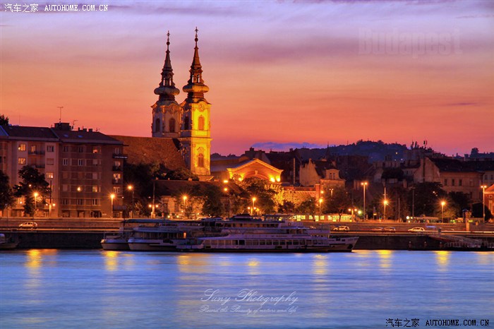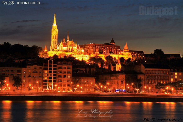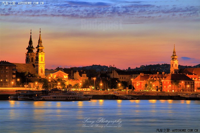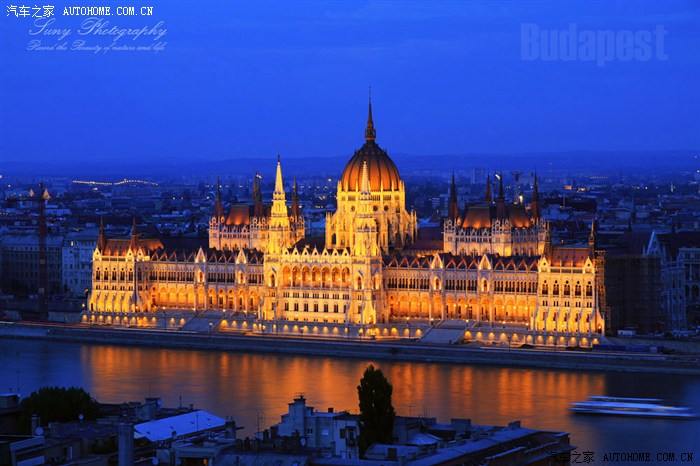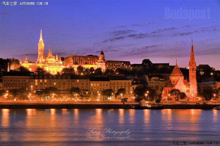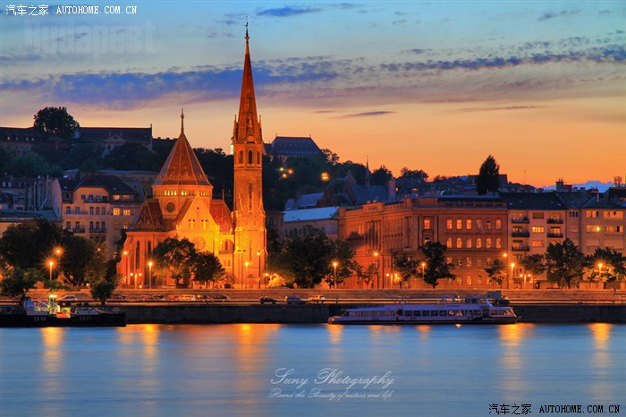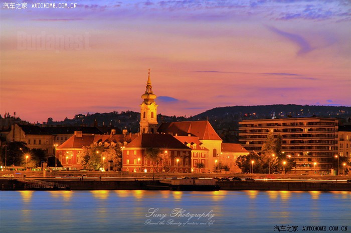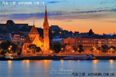 1.夕阳西下,城市灯光也开始亮了起来,照耀着多瑙河对面美丽的教堂和建筑。