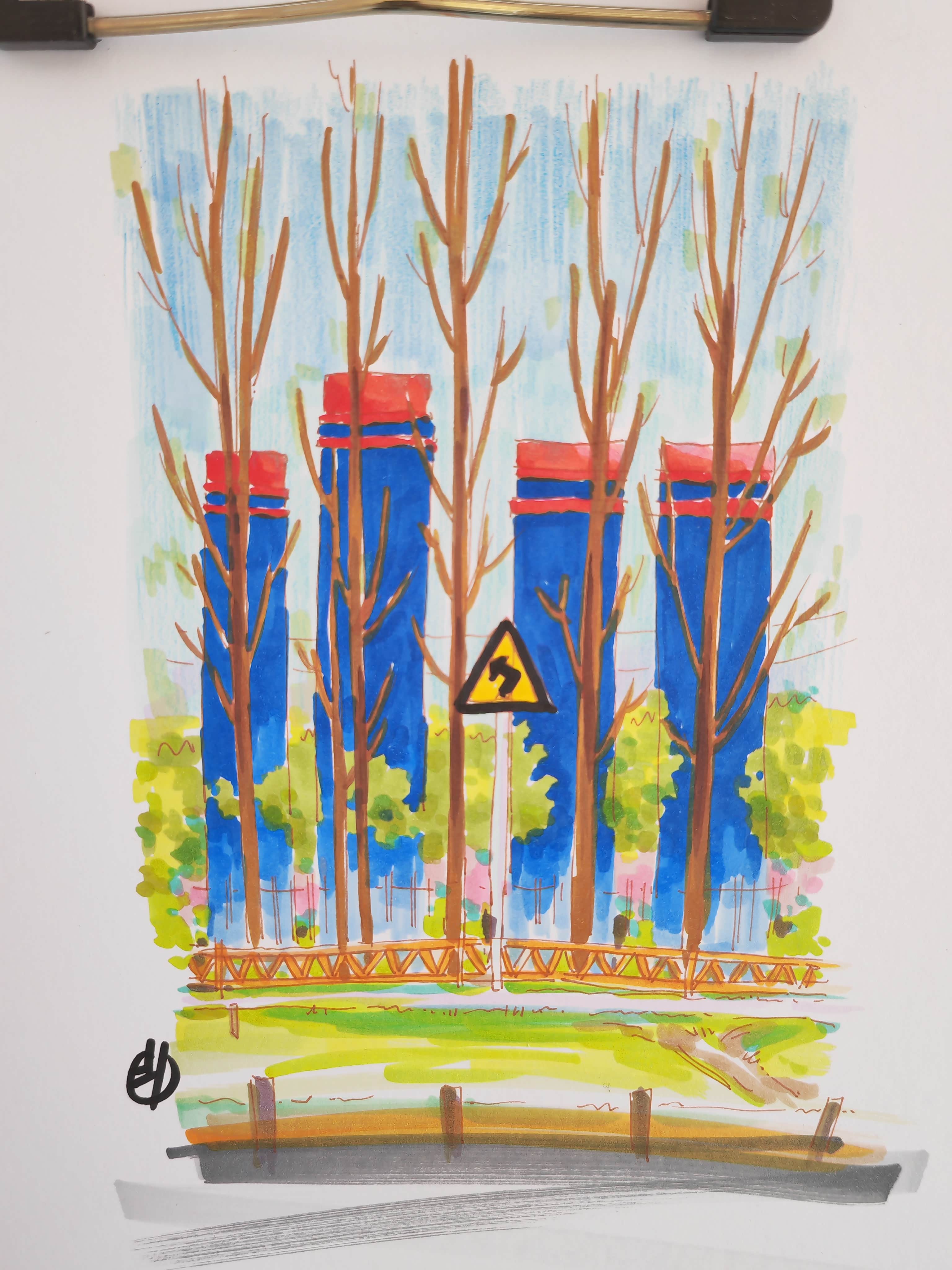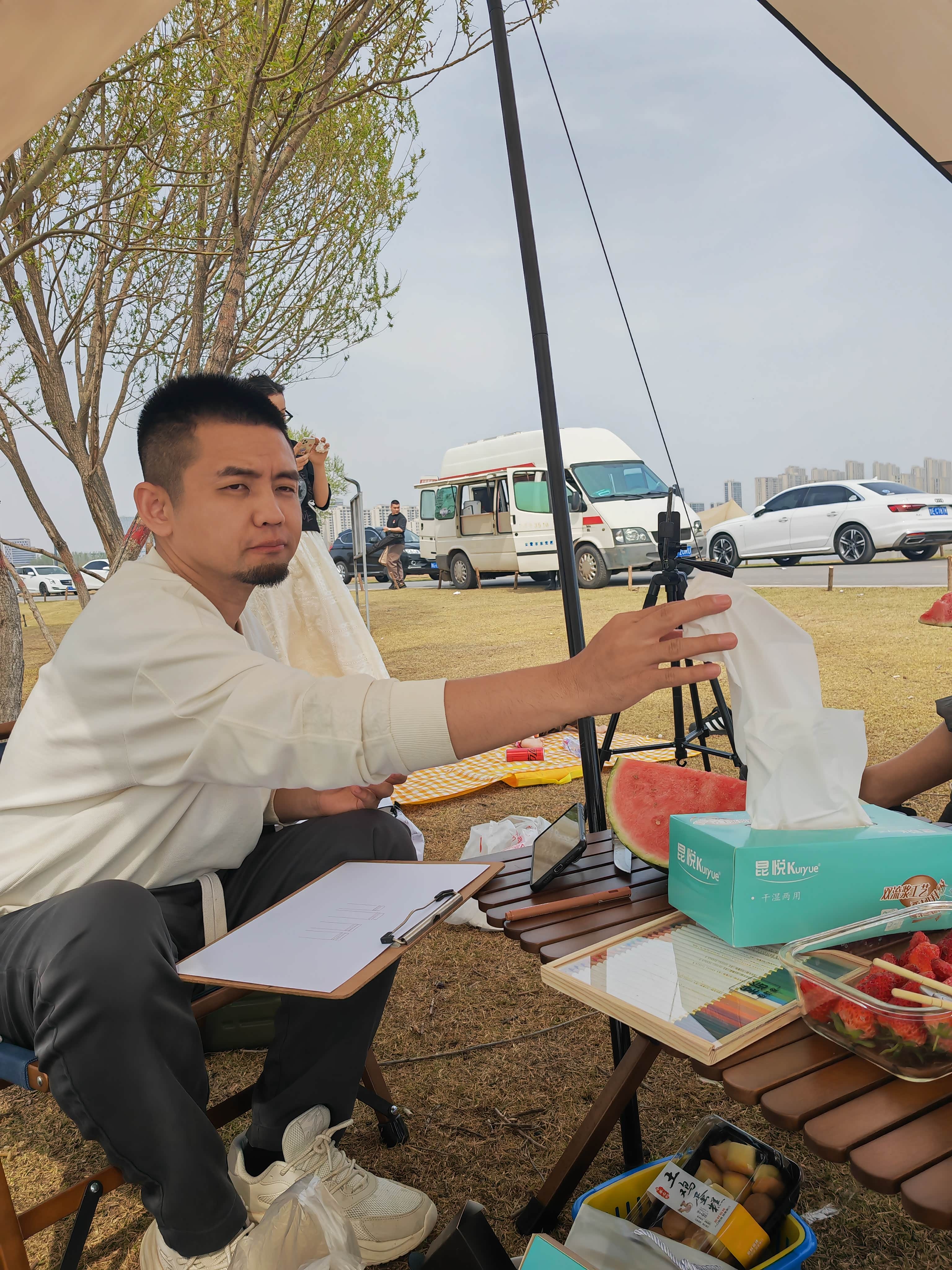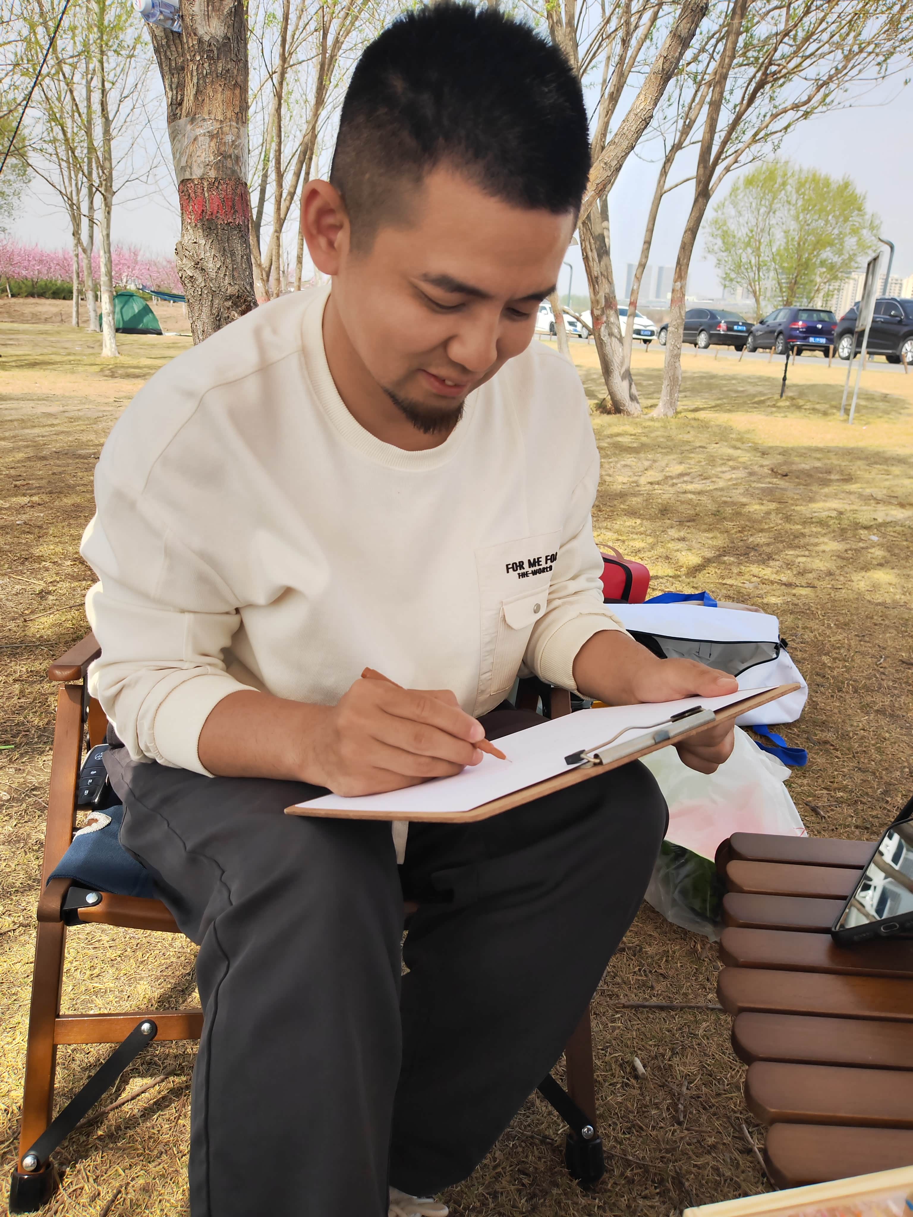 旅途故事:这次出游带来了自己的绘画工具,看到远处的油田建筑,就有种小时候的深深回忆,于是用画笔记录下来。还开了现场直播露营加绘画过程,朋友主要直播关于车辆知识的讲解及驾驶体验分享,我则展示绘画技巧等,来参与互动的还挺多,挺有氛围感。