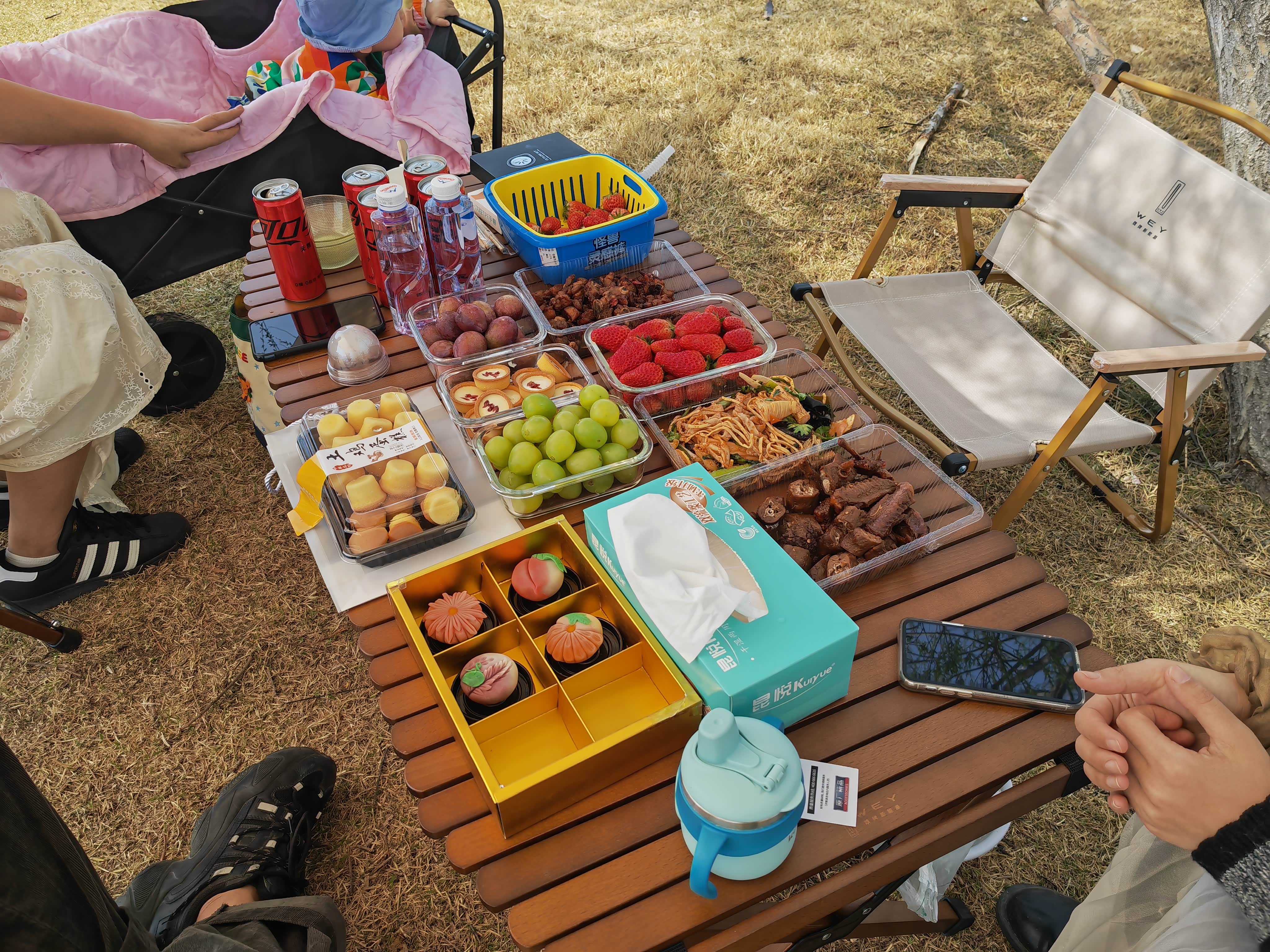 魏牌高山的大空间在这次出游发挥了巨大作用,轻松地将露营装备和食物从车内取出,摆放整齐。我们在高山旁享用了一顿丰盛的野餐。高山的车载冰箱为我们提供了冰镇的饮料和水果,让这顿野餐更加惬意。
