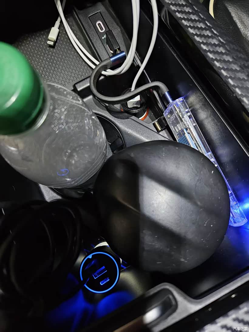 两个点烟器走线,其中一个点烟器带氛围灯。后面应车友要求,还特地搞了套U***无损转接方案,需要的私信,