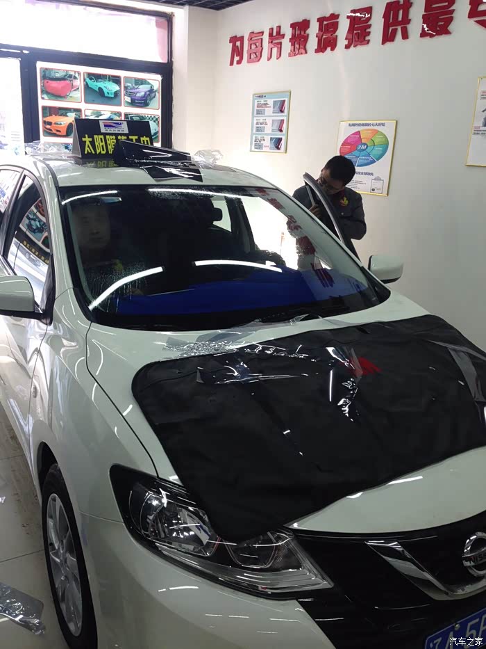 13号上牌,14号就联系群里面的人,群主认识3M的人,于是乎谈好价钱,1400=前挡田园风光+侧和后是黑马王子+熏黑尾灯+黑顶。14号当天就去贴了膜。感觉一下子就高达上了,特别给力。贴膜的也是手艺特别好的老师傅(年纪不大,但是手法老道啊),2,3个小时搞定。期间看到他们有一个凯迪拉克贴全车隐形车衣,口水都流下来了,只不过银子不够,够的话我也想贴一个,还看到一个刚提的骐达,贴的国产膜,799,哈哈,我觉得还不如贴我这个呢。