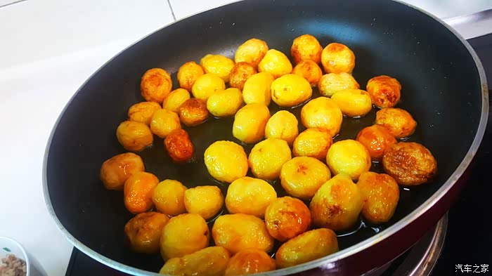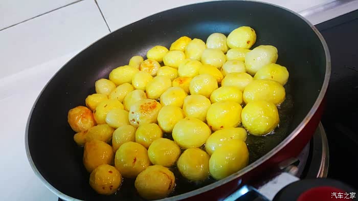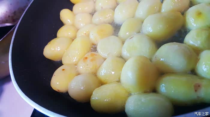 ▲小土豆的平面是很容易出现焦黄的,盯住,否则过一会就给糊掉了,如果单盯着一面去煎的话,也就三五分钟,估计就出现平底的硬壳了,如果一直转,那土豆煎出来还是圆的……我自己感觉是这样哈,勿喷……