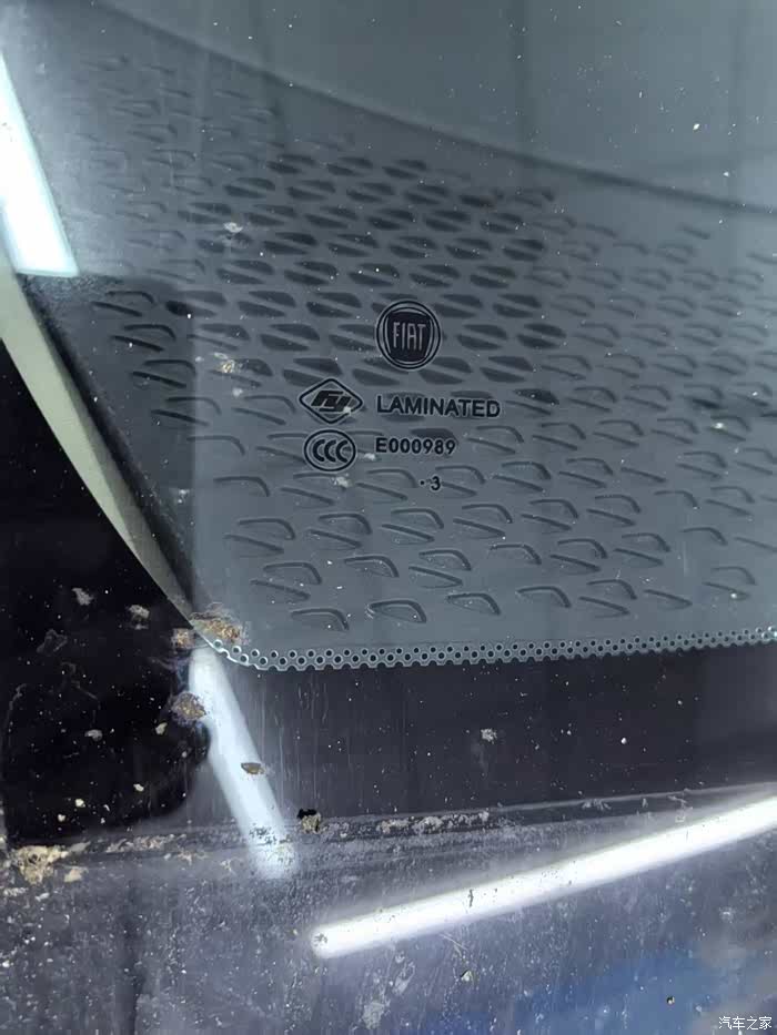 菲翔的原装玻璃和我这次安装的都是福耀玻璃,感觉没啥区别。要说有区别的话,就是:①我破损的玻璃上有贴膜,新安装的就没再贴膜了;②原装玻璃上有FIAT的标记(如下图所示),新玻璃上就没有FIAT的标记了。