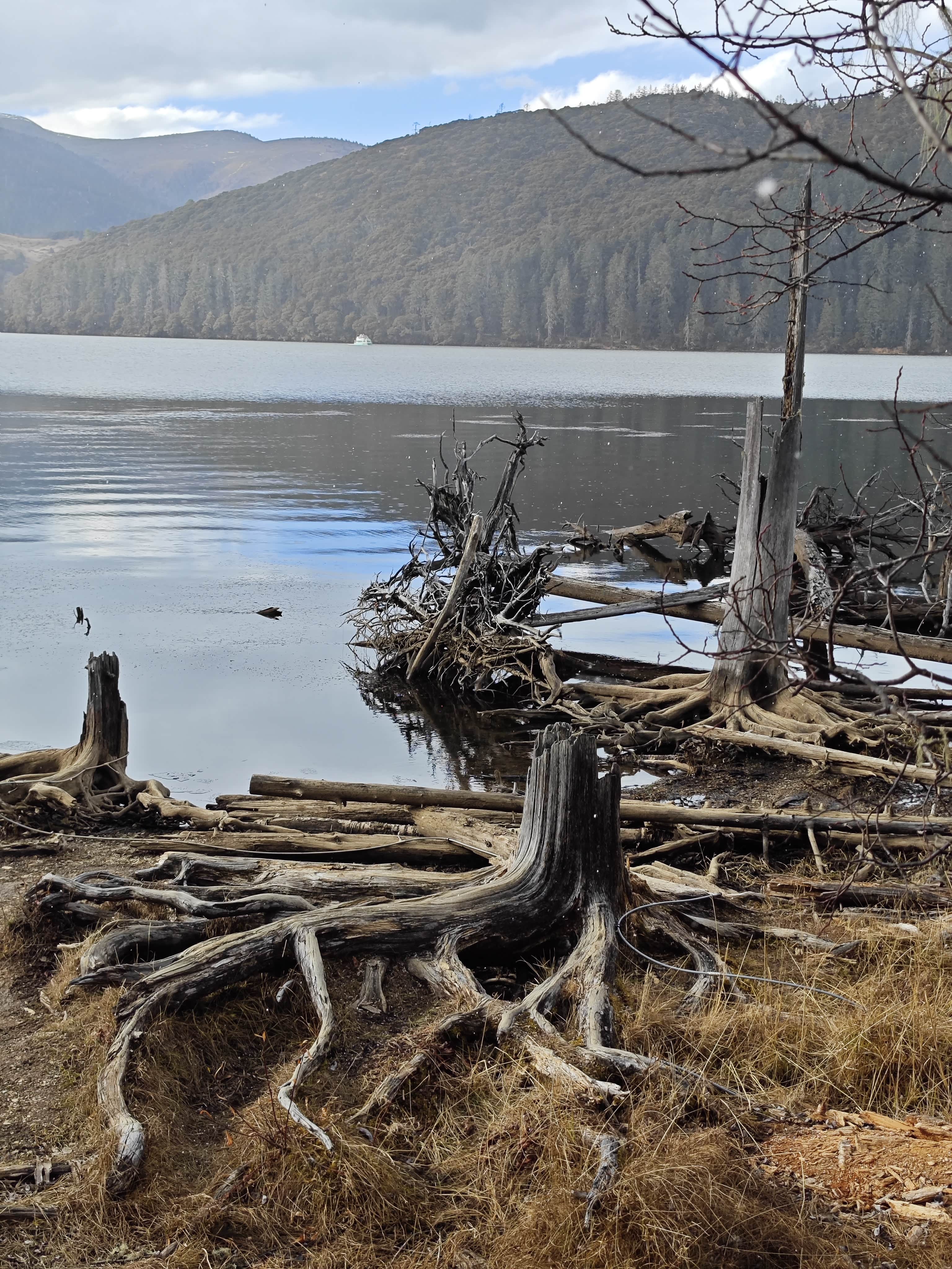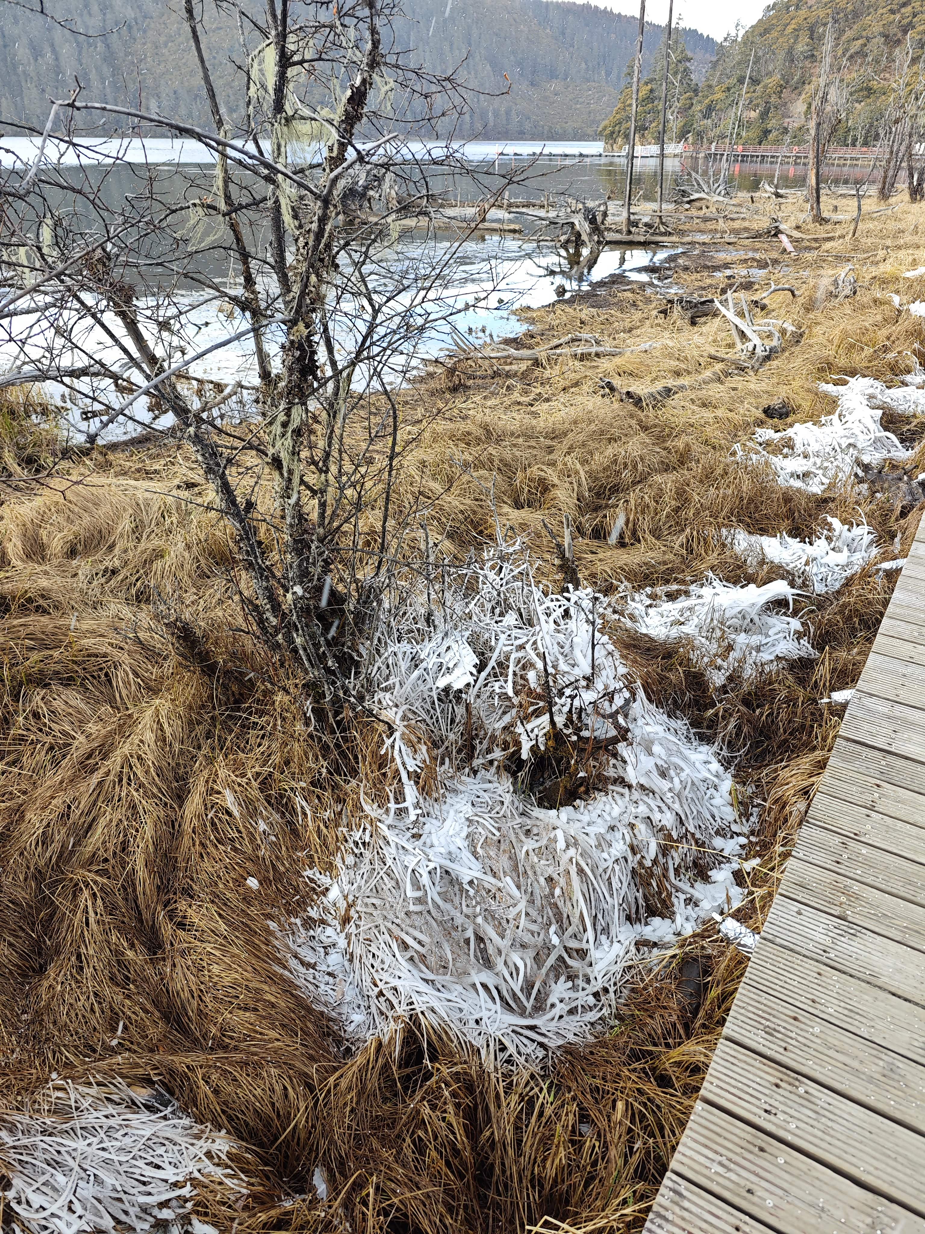 在普达措国家森林公园,真的好冷。水雾结冰了。