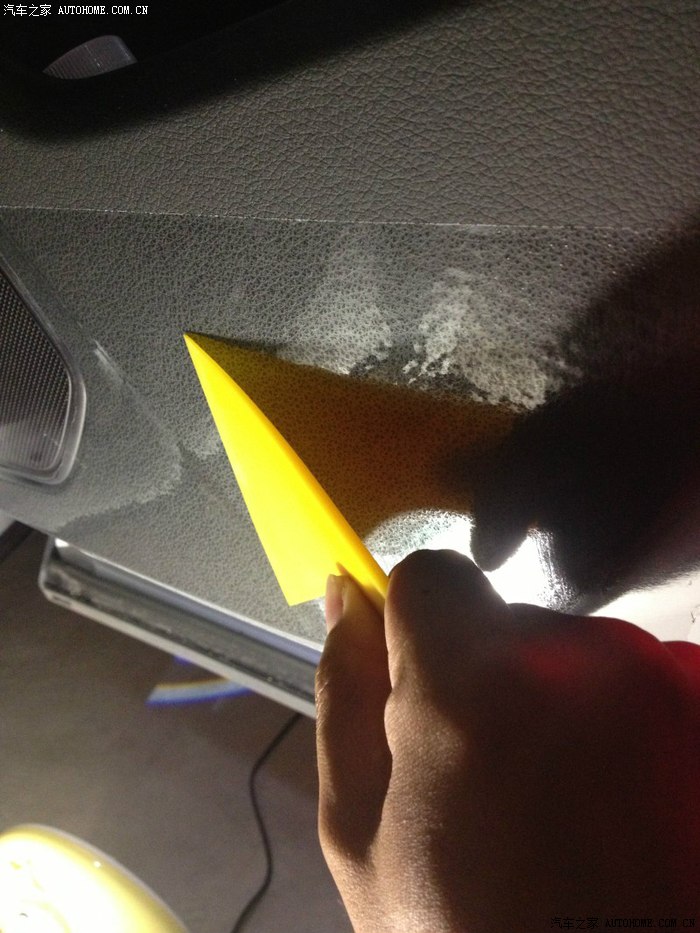 上下车经常踢到门板,买了卷犀牛皮,但高度不够,不算美观,先自己动手贴上,保护效果确实不错。工具:剪刀、纸刀、刮板、电吹风,还有耐心。