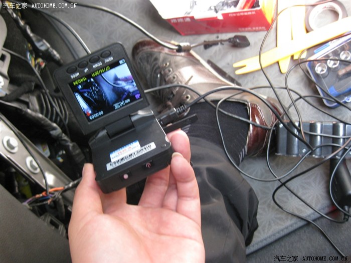 安装测试,,,取的是点烟器的线,因为钥匙拔掉能自动关电,启动车自动连线!!达到开车自动录象