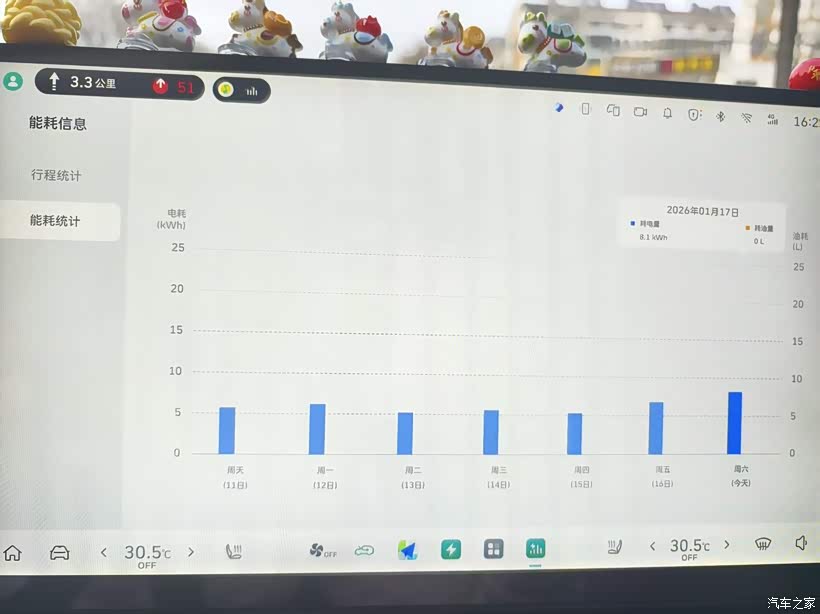 而且我发现个窍门,要是只开方向盘加热和座椅加热,耗电一点都不明显;但要是在这俩基础上再开空调,那耗电就快了,大概跑5公里,续航就得掉2公里。