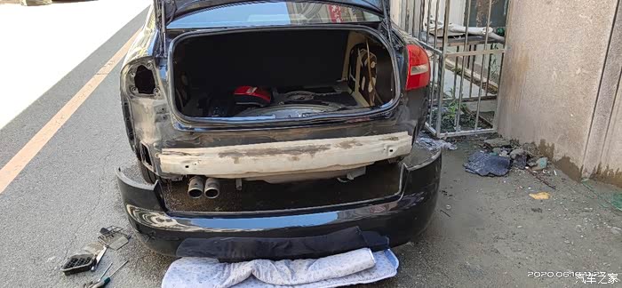 掀开后备箱垫子发现,水还不少,这个量级绝不是车里进了耗子尿的尿。