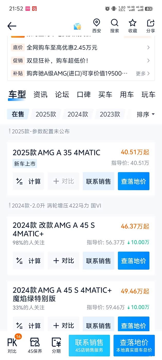 五、以上大概总结了一下,我认为12月12号发布这个新改款2025款AMG A35,颜值上比老款更时尚靓丽。但是论性价比的话,老款现在在指导价上优惠了10万,论性价比还是老款的更高。是车子的东西更新换代太快了,买新不买旧嘛。
