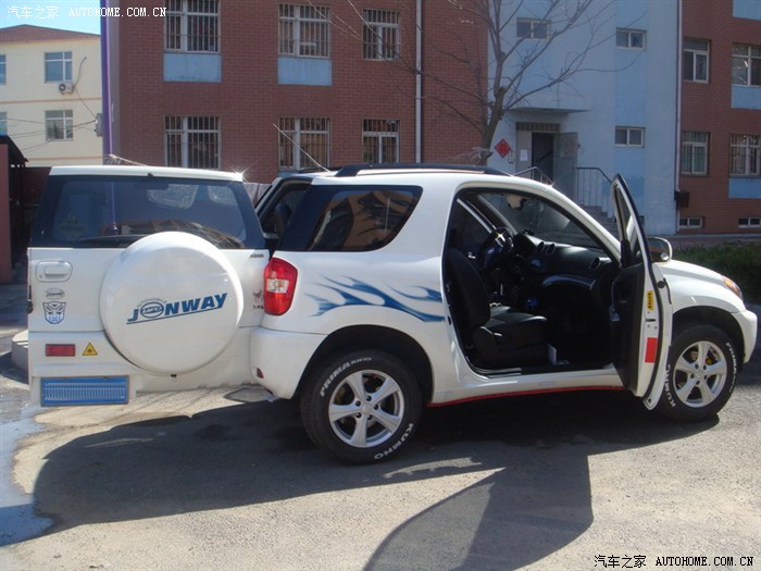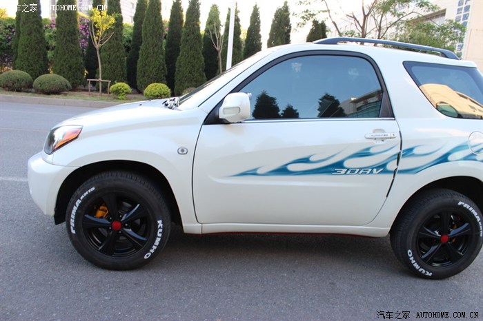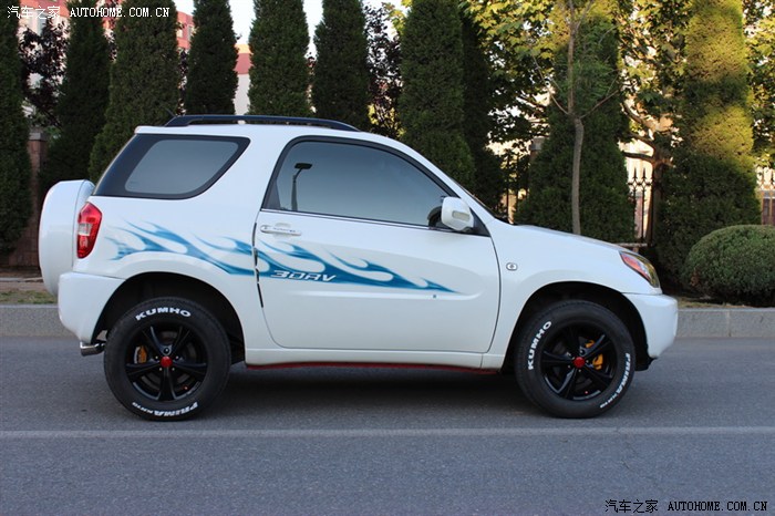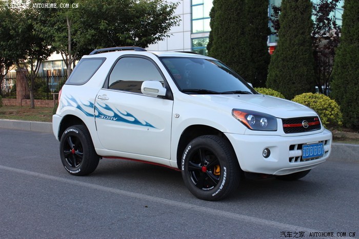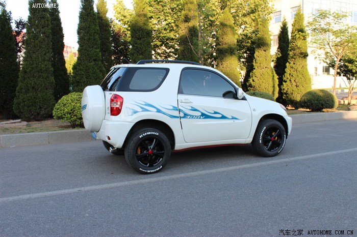 本人是极度爱车之人,爱到什么程度?车身任何位置有小米粒大小的掉漆,都得补上。此贴是第二贴,时间一晃买小飞快一年了,现把我这段时间的改装及使用心得在这里与车友们分享,小飞现在9个月,一万2千公里,整体表现没有让我失望(因为在买小飞前到网上查看资料,大多数都是说小飞不好的,但是我还是毅然的选择了小飞),1.6的三门小飞要你舍得给油,动力绝对够用,车友们总说的词是“车肉”,本人认为没有肉车,只有肉人,你3500转换档试试看车还肉不肉,我平时都是2500转换档的,油耗在8.5左右,还可以,要是温柔点还能更省;话说回来,为什么选择三门小飞呢?我给大家分析一下,第一点我非常喜欢单开门的车,拥有一台单开门的车一直是我的梦想,第二点我比较喜欢SUV,视线好,通过性好,现在大多数城市都在进行各种修路,有辆SUV还是比较实用的;第三点我喜欢短一点的车,比如说QQ、F0等,但是必须是双排座,现在停车位特别紧张,我住的小区稍微晚回去20分钟就没有位置了,但是有些空位三厢车进不去,小飞确进出自如,这就是三门小飞的最大优势了,本人非常不喜欢三厢车,整天带着个大备箱,费油先不说,就说天天需要做的一件事情停车吧,就够让三厢车主头疼的了,特别是钻空,有车友会说,三厢车安全,一旦追尾了备箱能顶不少事呢,但是我看不如小飞的大备胎来的实在;第四点我比较喜欢横向宽一点的车,这样坐着舒服,前一段我这里有个小型车展,我去试了一下别克昂克拉,四驱顶配19万多,我上车后一关门,心拔凉拔凉的,左胳膊顶到门板上了,横向太窄,根本就无法接受,不过内部做工是真好呀;第五点我虽然喜欢SUV但是高油耗是我接受不了的,但是小飞做到了,油耗和家轿一样,完全可以接受;第六点我喜欢有一个宽大的后备厢,有些车友会说,三门小飞的后备厢特别小,是呀,说的没错,但是把后排座椅拆掉呢,不要忘了小飞的后排座椅是快拆型的,几秒钟就可以拆掉一个,拆掉后排座椅的空间,我个人认为是足够用了,前提是在如此短轴距的车身上;第七点我就是一个上班族,买不起太贵的车,SUV价格基本上都高于家轿很多,但是小飞做到了,价格适中,大多数上班族都能够接受。第八点谁都想买一辆耐用的车,谁也不想有事没事都往维修店跑,虽说小飞毛病也不少,但是发动机和变速箱这两个大件技术非常成熟,经过多年的市场验证,还耐用,并且配件很多、价格便宜。