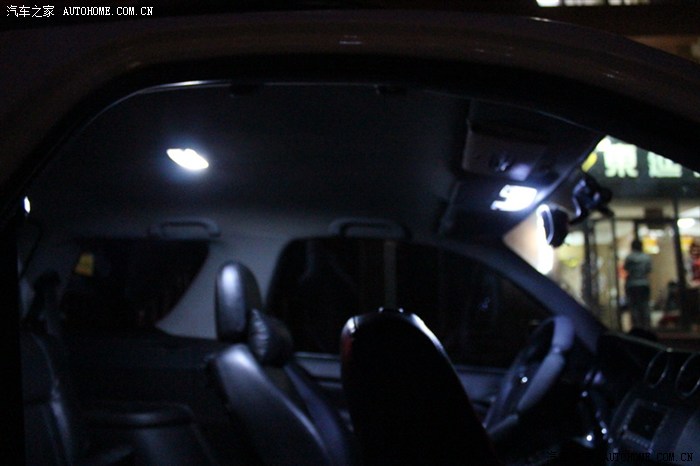 全部都是LED,中间加了一组,因为晚上开门时前面灯是不亮的,现在亮了,非常实用,线是从后顶灯接过来的
