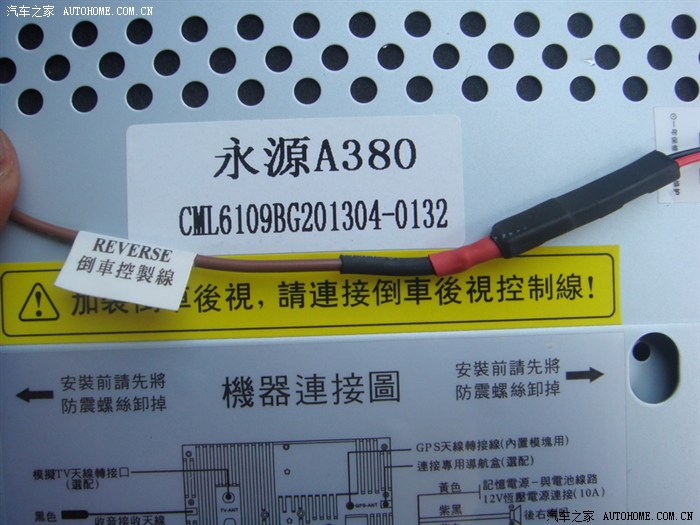 永源A380专用,倒车后视的控制线焊了个插头,方便以后拆机用,用热缩管包上了。