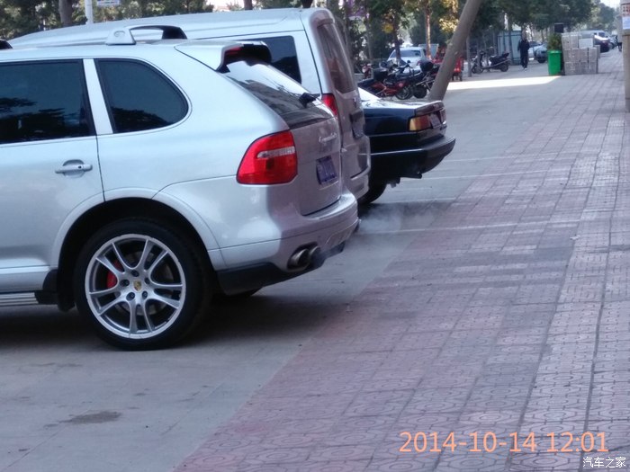 旁边停了个卡宴,一发动尾气喷的哇哇的