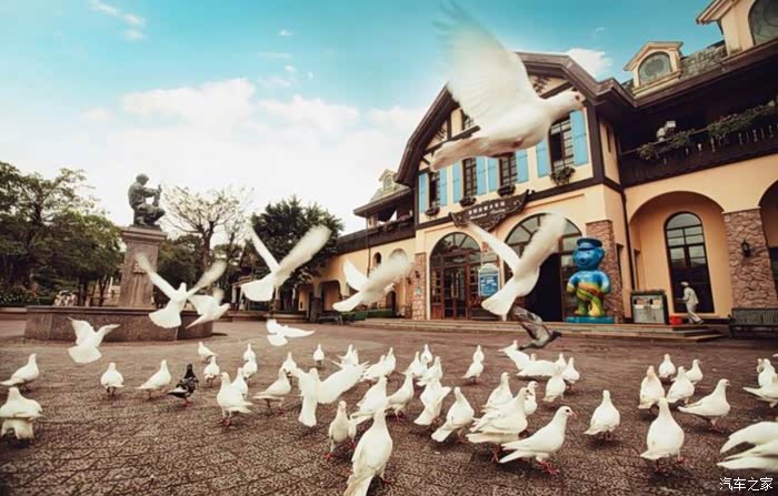 广场上有很多可爱的白鸽,它们会经常和人嬉戏、玩耍,人与自然的和谐