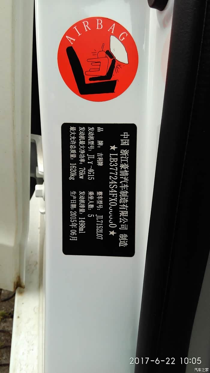 15年7月提的车,车是15年6月出厂的1.5手动精英不带天窗款。
