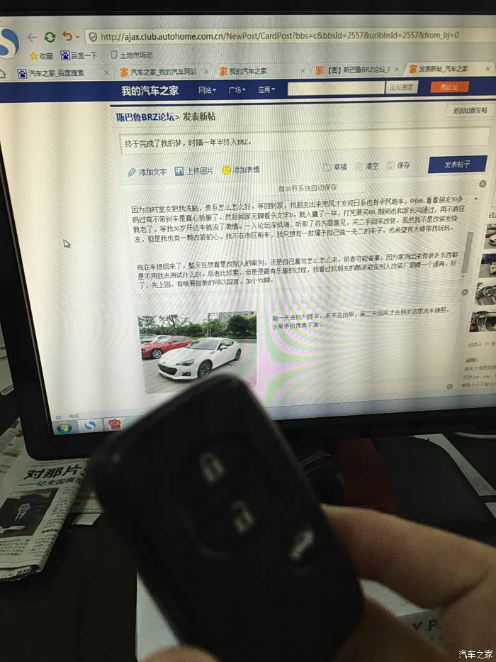 好了,主题开始了。车子是杭州提的,找了很久,也找过各种准新车,但是都不太满意。要么内饰是红的,要么外观是红的,我不喜欢这么骚的颜色。话得从上一辆车子说起,上一辆荣威750是08年买的,落地28多点,2.5自吸V6。商务车,后排舒服。但是,一个年轻人怎么能开这车。所以一直在找车,找一辆适合自己的车。梦呢还得从13年开始,在那一年从上海回浙江,高铁回来的路上看到旁边有小孩在看头文字D,当时我也瞄了几眼,感觉很渣,不怎么喜欢日系。因为当时室友把我洗脑,美系怎么怎么好。等回到家,找朋友出来兜风才发现日系也有平民跑车,叫86.看着朋友70多码过弯不带刹车是真心折服了。然后回家无聊看头文字D。就入魔了一样,打死要买86.期间也和家长沟通过,再不疯狂就老了,等我30岁开这车就没了激情。一入论坛深似海,听取了各方面意见,买二手回来改装。虽然我不是改装发烧友,但是我也有一颗改装的心,我不在市区飚车,我只想有一款属于自己独一无二的车子。也希望有大神带我玩玩。