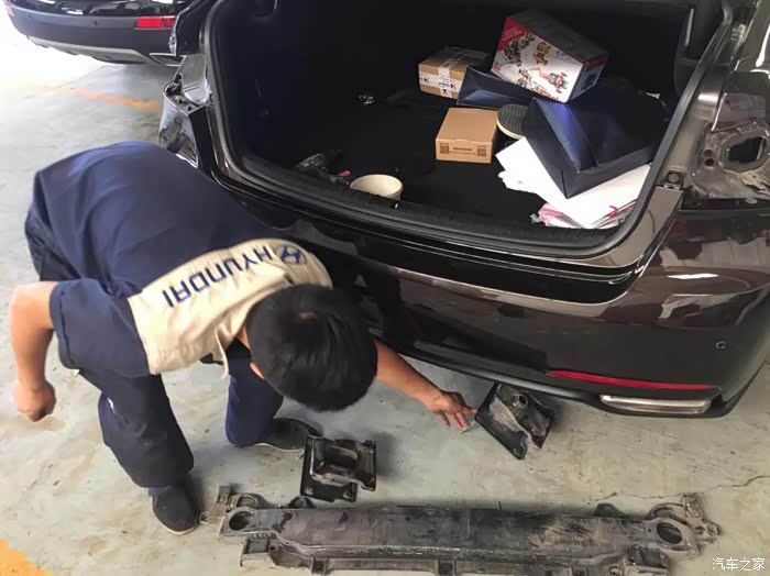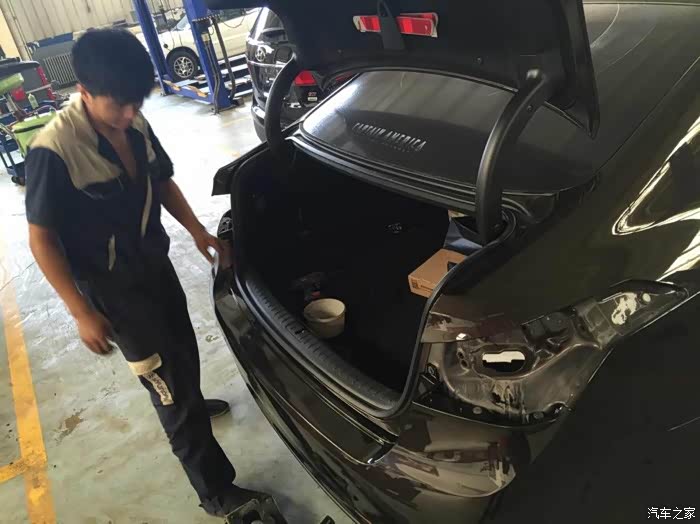 年会结束,回京后联系对方保险公司定损,对方保险公司只同意换后杠,杠内的杠铁,缓冲柱并不同意更换,理由是达不到更换的标准。经过最后的交涉,终于同意给我更换了,然后通知4s店给我订货,从订货到货到,后杠喷漆,一共用了三天时间(包括送车时间),这里表扬一下X派X特的4s店,和保险部的小F,销售WJJ,以下图片都是他们帮我照的,保险部的小F一直帮我和保险公司交涉,十分感谢!