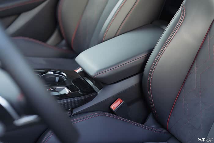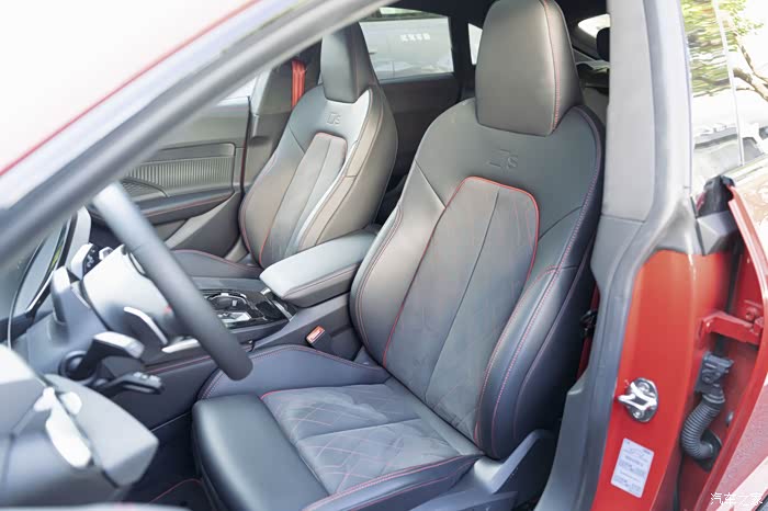 我刚坐上来的时候就注意到这个座椅了,是一体式竞速运动座椅,本身的包裹性和舒适性都是满分。和车身相搭配的缝线既融合了材质,也让座椅充满了战斗感。