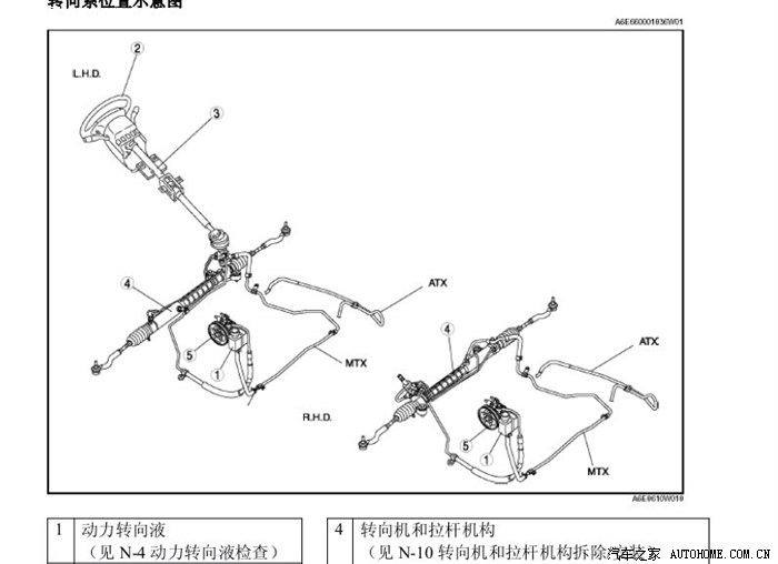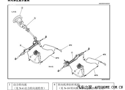 这个是在马自达6的维修手册里面找到的。 助力系统是循环的系统。 图中1 是存储助力液的油盒, 5是油泵。 其他的没问题,咱也不管了。 关键这个图没出 哪个管子是进,哪个管子是出。从下面接油盒底部的管子应该是回油管,上面接泵的管子应该是出油管。