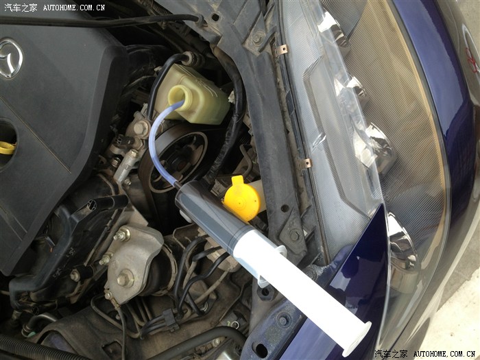 搜了很多贴子,没找到现成的马自达6的换助力油的贴子。看了几个贴子,凯越车主、海马车主、迷你车主的,都不错蛮详细。分析了一下,基本上大同小异,都是先抽出来,发动机器,让泵泵出来一部分油,再加满,再大方向盘,再加满,再打方向,再抽出来。依次循环,重复2-3次,基本就可以了。