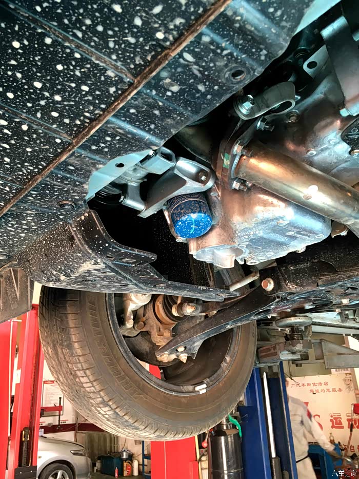 6.装新机滤,安装护板,放下爱车