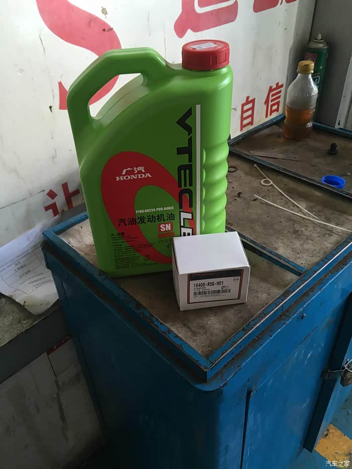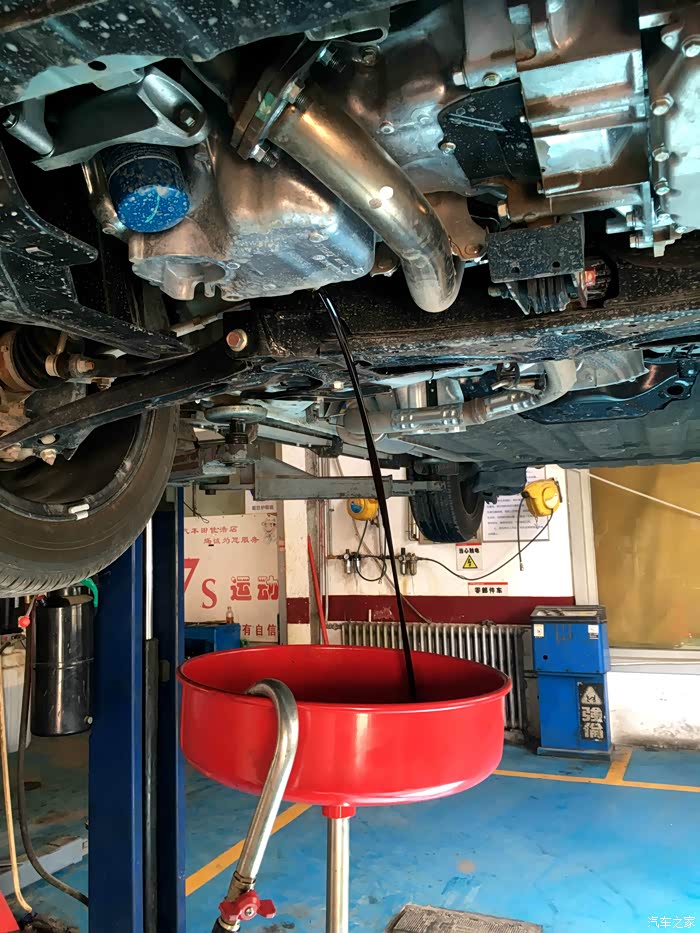 1.车入工位,上升起降机,领取保养的机油、机滤和玻璃水