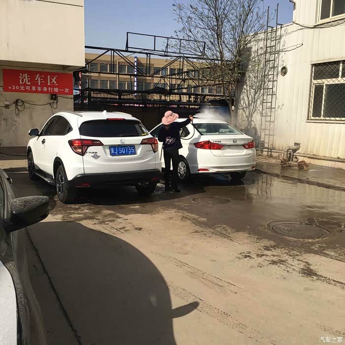 从爱车入工位到洗车完毕一共40分钟左右,时间上还是可以的。维修工人还是比较热情的,2名工人施工。机油1桶全部都加了进去,没有剩余。剩下的玻璃水,工人给我放进了后备箱。本来爱车就不脏,但是为了发一个全部的保养过程,我还是决定洗一下。这种洗车就是应付事的活。你们都懂。缤智首保总体感觉良好,下面上图!