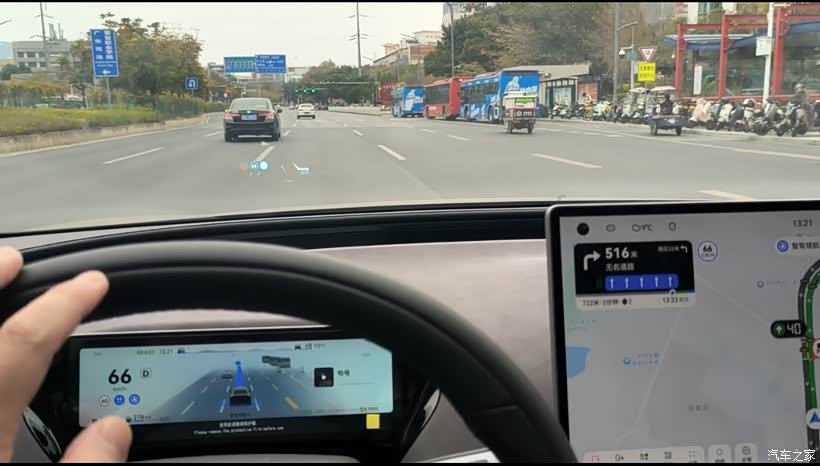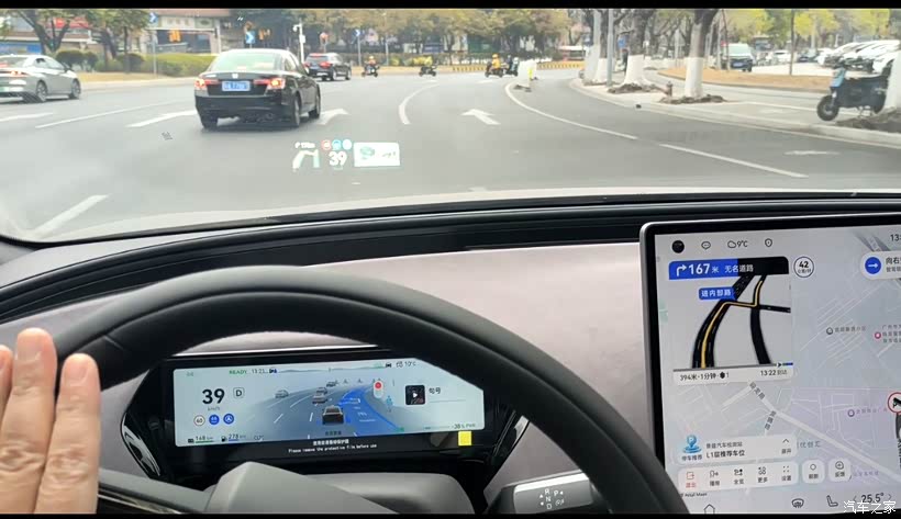 试驾过程中,我们开启了城市领航功能,车辆能自动跟车、变道,遇到障碍物时提前预判并平稳避让。在城市拥堵路段,拥堵辅助功能解放了双脚,大幅降低驾驶疲劳。转弯、掉头的并线提前量颇为自信,大概比目前HT在用NDA的并线提前量,减少了一半以上,有利于提升通行效率。