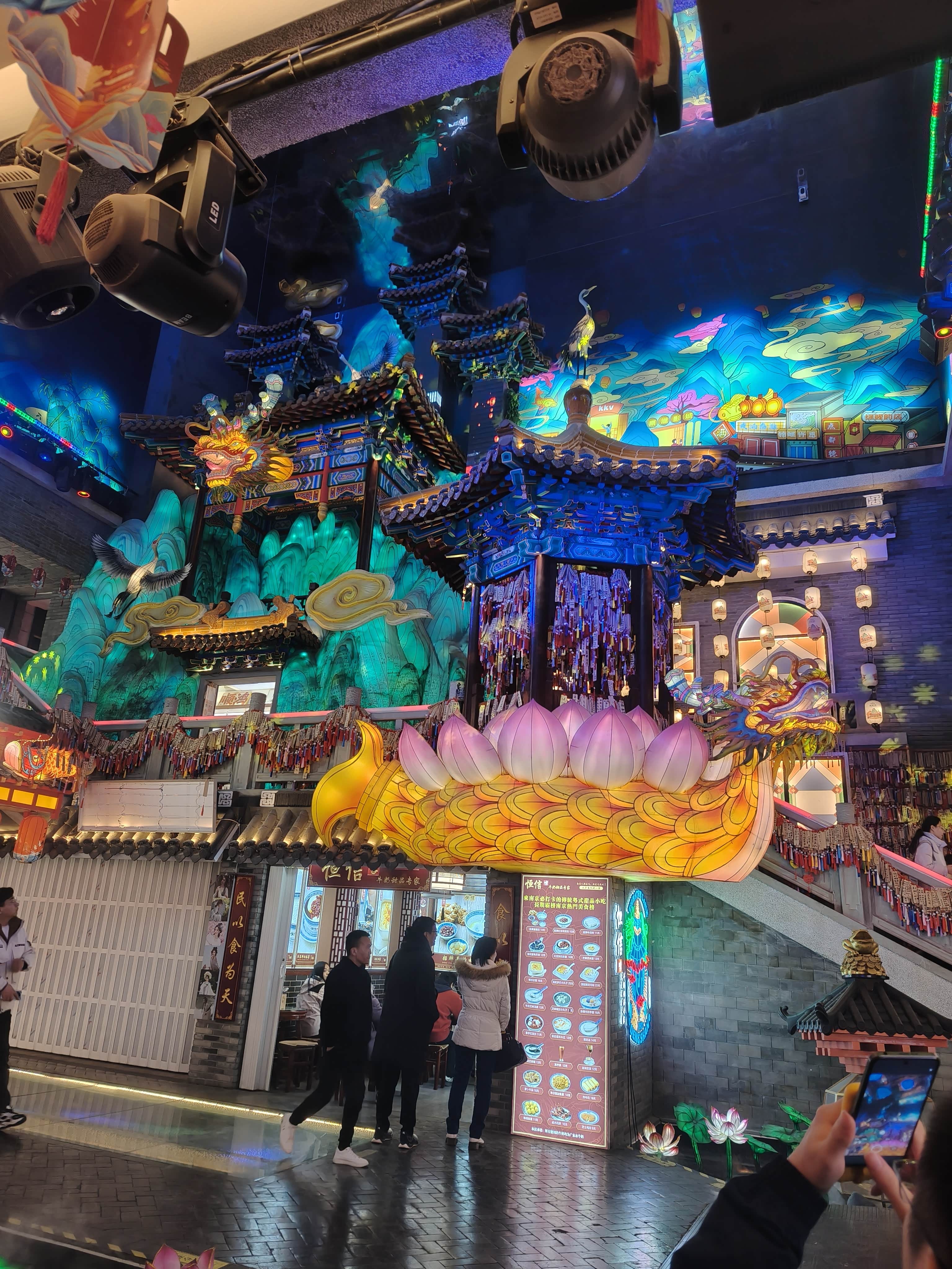 晚餐选择了南京大牌档,热闹的氛围很适合家庭聚餐。桂花糖芋苗、赤豆元宵都是孩子们爱吃的甜食,东山老鹅肉质软烂,咸香入味,配上清爽的时蔬,一顿饭吃得其乐融融。饭点排队虽久,但提前用手机取号,加上孩子们在餐厅的小戏台前看皮影戏,等待的时光也变得有趣起来。
