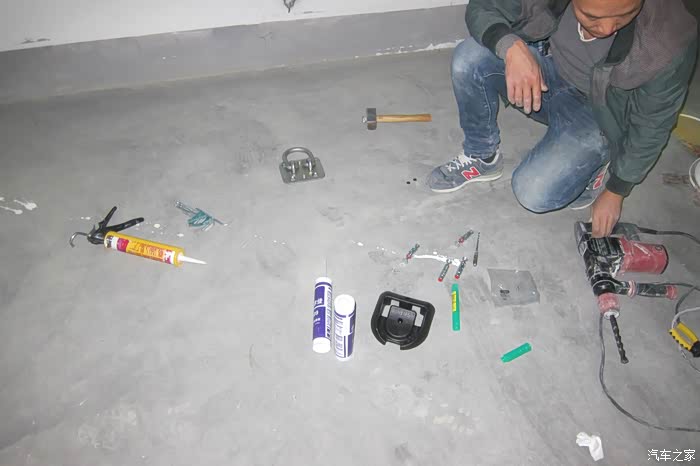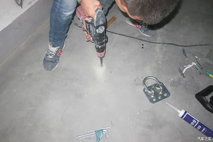 开始打眼了,之后放入螺栓,用大锤砸进去,使用内六角拧紧。
