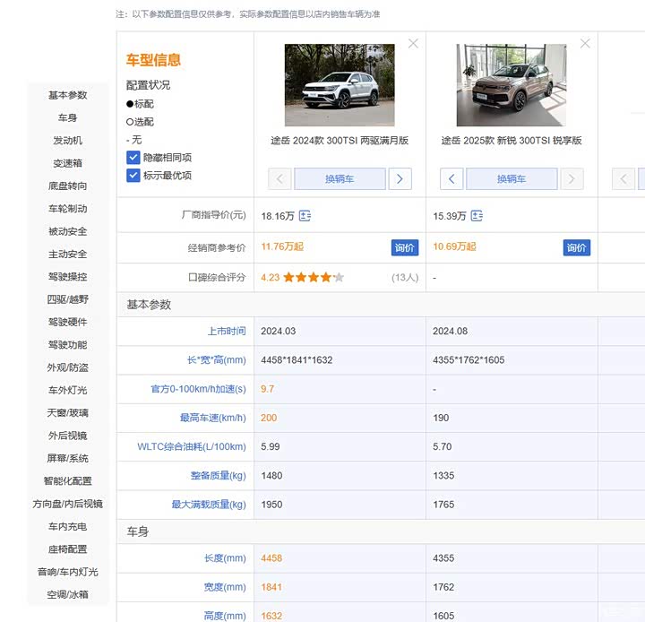 一对比就明显感觉出来时降配减价了!