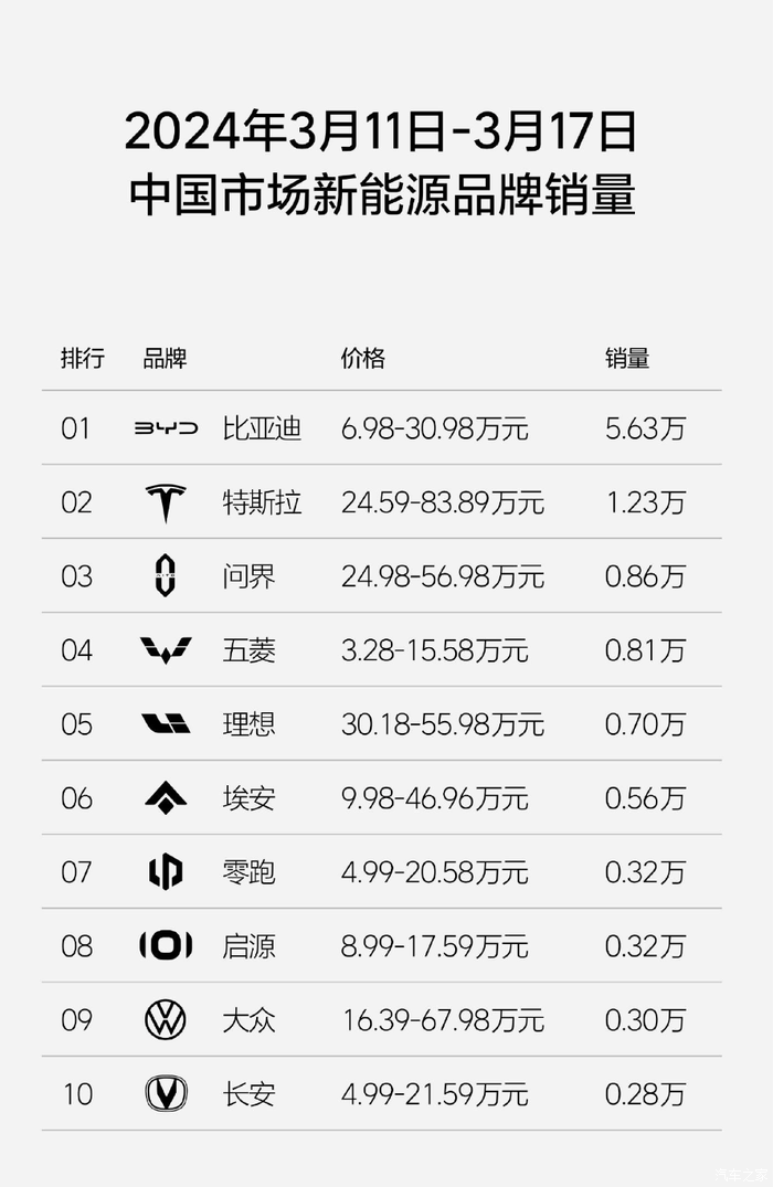 比亚迪周销量比特斯拉高了差不多五倍,我看谁还买韭菜特斯拉!还有国产新势力现在也挺厉害的了,这前十里面不少国产新势力啊。