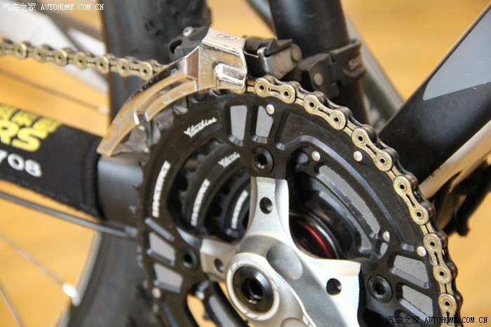 NEXT SL的牙盘曲柄是目前最轻的曲柄,不过那些都是土豪们的玩具。顺便说下,这个车架选用的管经是27.2,配合扁平的腿管达到很好的减震效果。