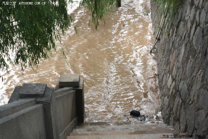 大桥下的黄河水泛滥了,已经淹住台阶