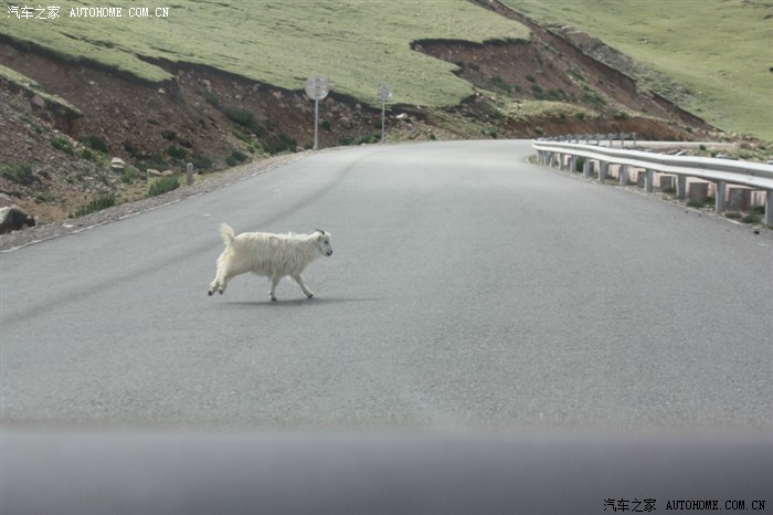 一只掉队的山羊,横穿马路时很危险的,还好当时我爸开的慢(沿途美丽的风景舍不得开快)