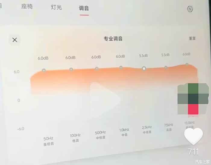 3.音响,也是远超它这个价位应有的水准,看测评说是T0至T1之间的水准,三频均衡,声场可调,建议调到中等偏小一点,否则回音太多。低音在播放复杂鼓组时还是会混乱,不能苛求太多,毕竟也只是个车而已。