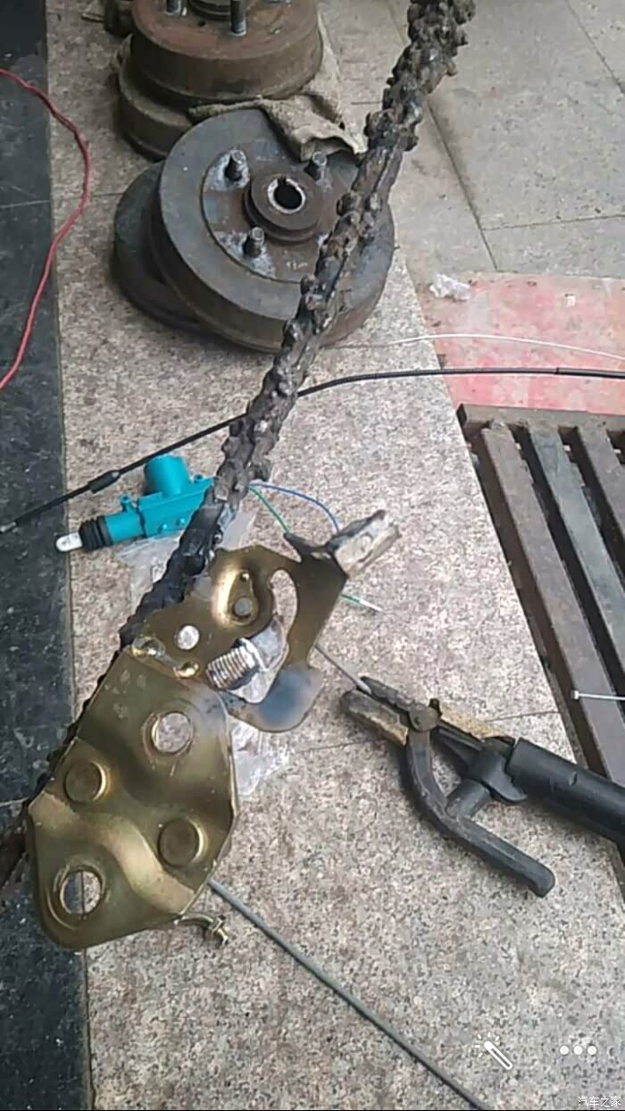 我研究过后门锁 门锁是在尾门上 拉线是拉动下面的杠杆带动门锁上露出来的小扁头解锁的, 我想直接把拉力电机直接施力于门锁内部机构,绕过杠杆传递那一步。把拉力电机和遥控模块塞到尾门里面,从后点烟器取电,解锁后点烟器供电,按遥控器开尾门。
